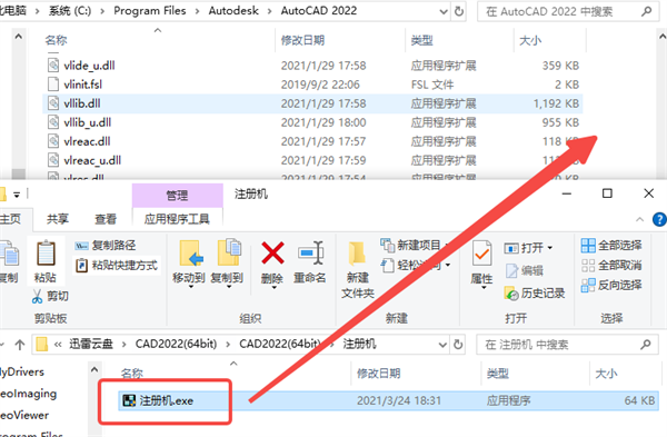 7、鼠标右键桌面【AutoCAD2022 】图标,选择【打开文件所在的位置】,把注册机复制到安装目录当中。