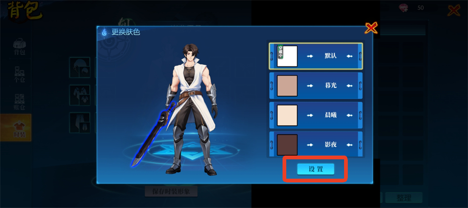 3、这里你可以选择不同的肤色,选择好后点击【设置】即可。