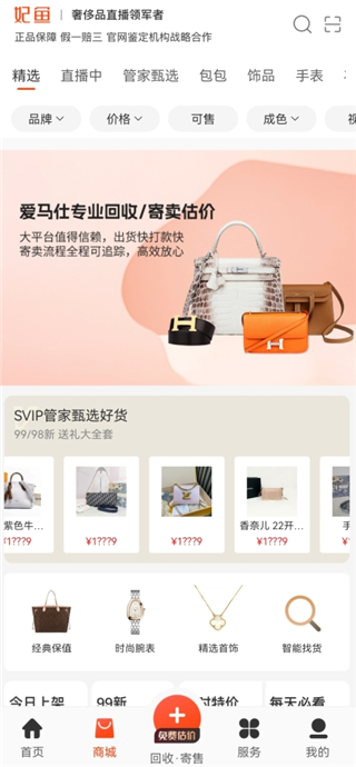 1、1000+直播 50位专业买手主播精心推荐,每月千余场直播,提供边看边买的购物体验; 2、1000+上新 每天1000+件商品上新,汇集LV、Chanel、GUCCI、卡地亚等品牌超低折扣; 3、100%真品 中检战略合作伙伴,每件商品均经中检认证鉴定师三重鉴定,真品保证; 4、极速售卖 90%的商品在15天内极速售出,科学的定价保证商品的售出速度和卖家收益。更新日志