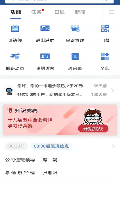 支持联合办公、工号、飞行号“随心选”;密码、指纹、人脸识别“随心验”;首页版块“随心切”;功能卡片“随心配”。