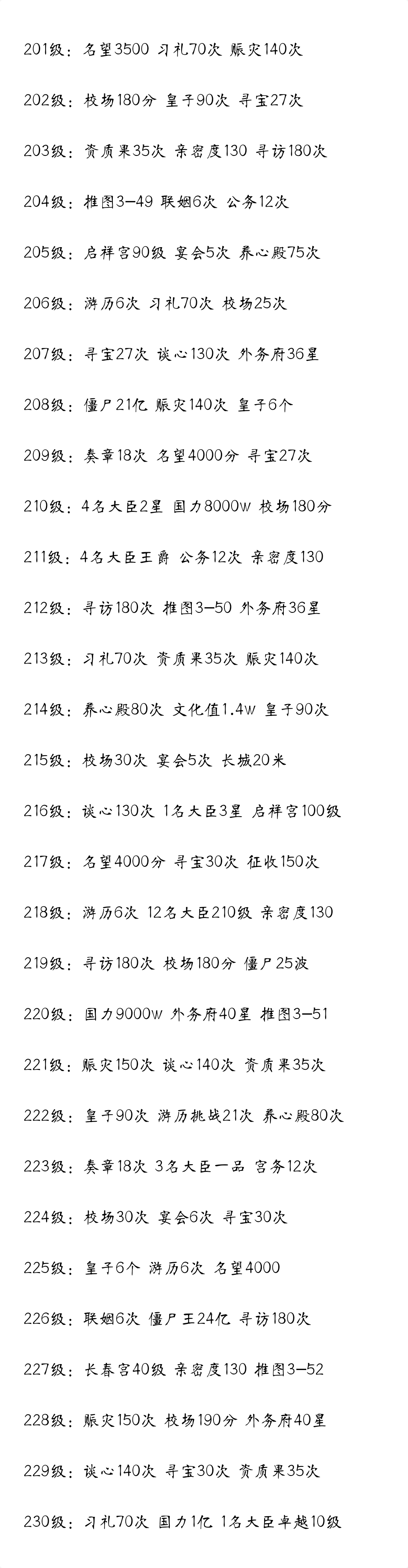 1、进入游戏界面,就是我们的金銮殿先是要批奏章;然后是勤政里征税、征粮、征兵(现在的一键征收还是蛮方便的)。 2、然后是任务里的美女任务、名臣任务都是达到条件就可以领取,日常任务争取每天都能完成,其中最最重要的要数主线任务,新手完成主线任务后将会获得大量资源和道具,能以最快的速度提升国力,但要注意的是为了避免卡任务的情况最好是按照任务顺序做下来。 3、然后是国力,要有意识的注意一下成就的完成情况,前期的成就奖励能帮助很快提升国力,排行榜是可以膜拜的,每天“国力榜”、“战功榜”、“美人榜”点击膜拜是给元宝的,这个日常是必须要做的。 4、点击退朝进入紫禁城地图页面,玩家可以通过左右滑动查看游戏不同的功能系统,这里分别有上书房、后宫、翰林院、珍宝阁、养心殿、世界副本等系统。 5、右下角的祈福、消息要注意的,别忘了每天都看一下,祈福有机会领取各种道具,消息就等于是游戏里的“邮箱”,活动元宝都是发在这里,一个星期清空,别忘了领取。 6、翰林院记得看“招募”里有没有可以新增的大臣,前期新增大臣对国力加成很重要。“现有大臣”里,用征税、奖励等得来的银子对大臣升级,前期的话先着重升级商业大臣,然后注意保证国力的政治比农业高一些,军事升级主要是对推图的贡献。 7、前期要偏向于商业大臣和军事大臣,因为商业提高后,征收会获得更对的银两,而军事提高后,有利于推图战斗力会相应提高(早期推图是获得新大臣最快途径)。 8、后宫,初期冷宫基本用不到;储秀宫和交泰殿是配合使用的,储秀宫选秀宫女,出炉后侍奉妃子,妃子再在交泰殿带领宫女处理后宫事务。 9、然后是三宫六院右上角的“修建”可以用后宫积分增加国力,个人建议,建设永寿宫、启祥宫、长春宫、栩坤宫、储秀宫、咸福宫就够了。 10、三宫六院里面“翻牌子”可以生孩子、赚积分,生的孩子就到了上书房,“妃位”中点击单个妃子可以习礼然后晋级,增加翻牌子的积分,“礼宫”里点击“礼官增加”和“礼官升级”。更新日志