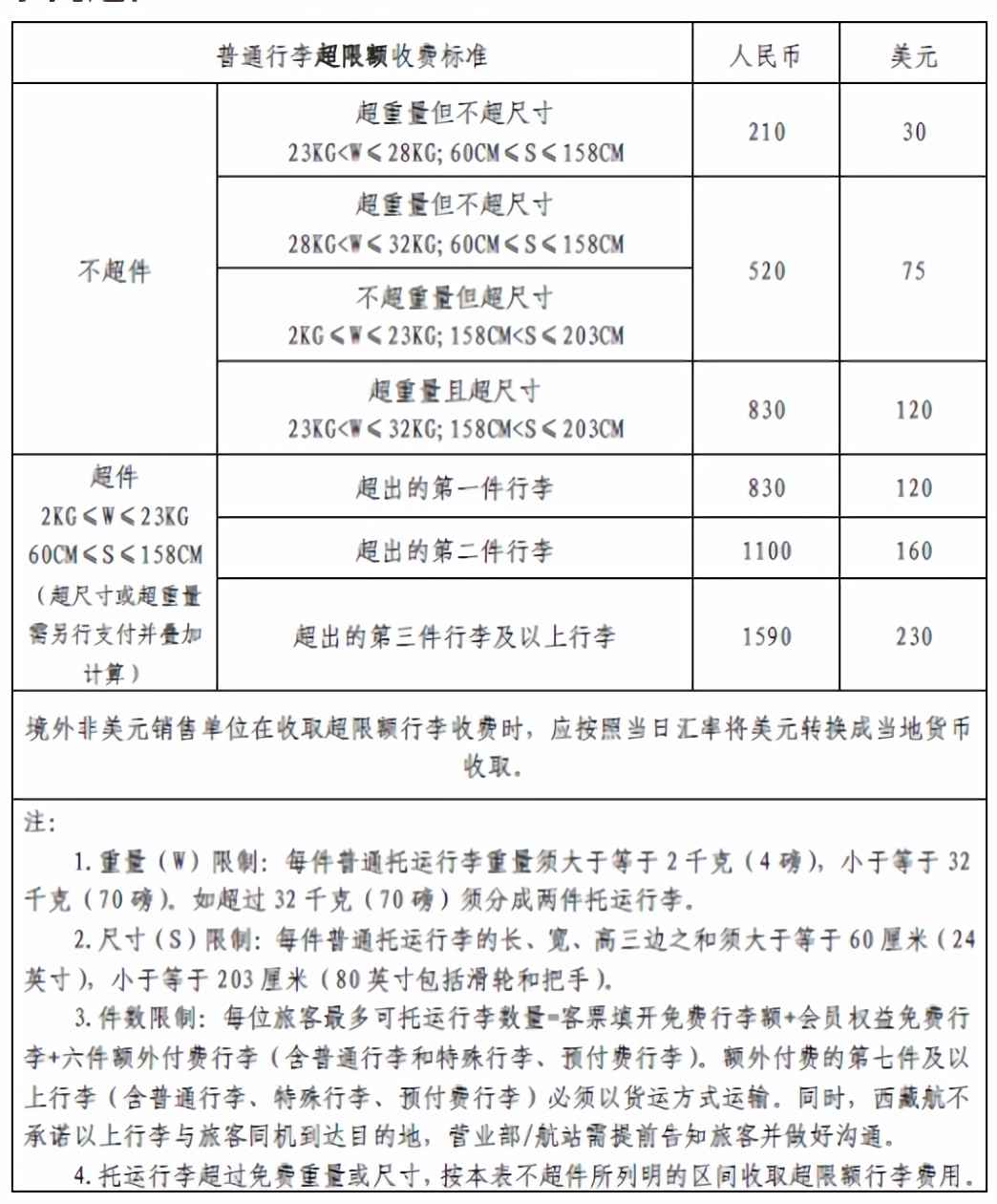 956096西藏航空行李超重收费标准