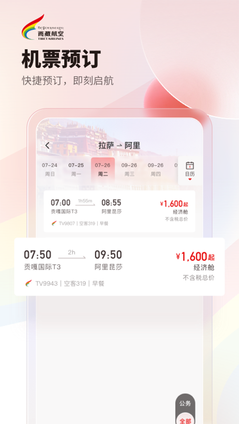 -新增机票验真,在线核验机票,不再担心买到假票、伪票; -新增航班动态,随时查看航班动态,随心规划未来旅程; -新增优惠卡券功能,更多优惠就在西藏航空app; -新增在线客服,现已支持客服在线沟通,随时随地便捷解决旅客问题。 -新增机票改期和值机功能,全方位优化您的出行体验; -新增实名注册优惠券自动发放功能; -新增机票非自愿改期功能; -新增领券中心功能模块 -支持中转航班预订,轻松安排出行计划; -新增多人值机功能,体验便捷同行值机; -新增特价机票专区,特价机票随时查,优惠活动天天玩; 更多优惠,更多精彩,尽在西藏航空! -新增秒杀专区,超低价特惠机票等您来抢! -新增保险销售专区,支持航班延误险、退票险、航空意外险等保险在线购买 -新增云闪付支付