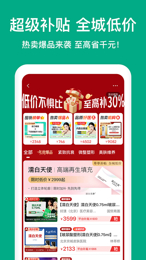 2,超级补贴来袭!热门爆品全城低价,至高可省千元!抗衰,补水,轮廓调整统统高补钜惠!