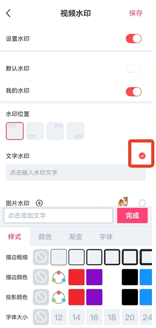 6、或者选择【文字水印】,可以设置文字水印的颜色、大小和字体。