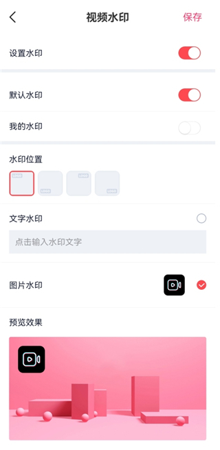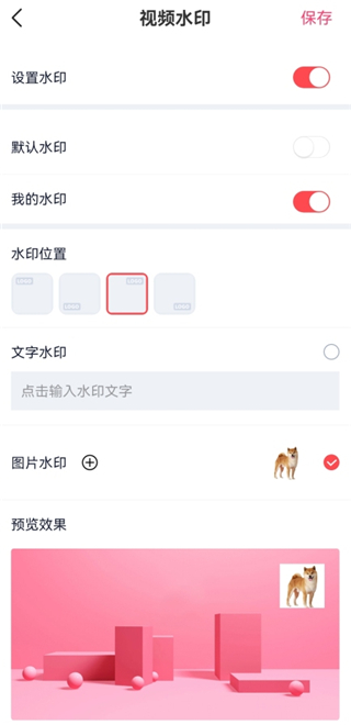 3、你可以选择默认的剪影视频制作App的水印和水印位置。