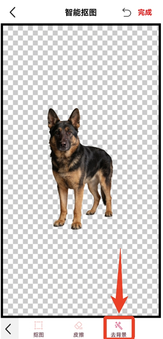 4、点击第三个【去背景】,再点背景就能去除了。