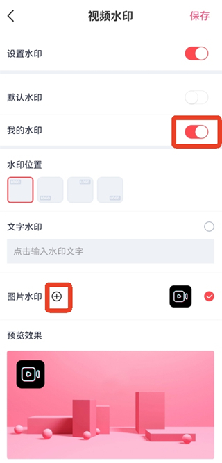 2、点击【设置水印】,打开右边的按钮。