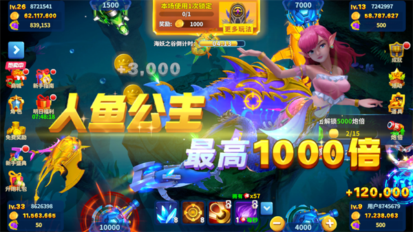 传说中,美人鱼有着光滑细嫩的皮肤,长着漂亮的鱼尾。她们出没在月夜之下,发出甜美的歌声,知悉大海最深处的宝藏,却转身就消失在地平线,引起人们无限的遐想。 游戏中就有神秘莫测的美人鱼BOSS,其拥有一头火热的红发,红蓝相间的尾巴,身着像是晶莹海水般的露脐装,造型又萌又漂亮。美人鱼会出现在海盗宝藏、食人鱼谷、时光龙穴、机械迷城等场景模式中,是一个随机倍率BOSS。在击杀美人鱼BOSS后,神秘大转轮就会出现,300倍~9999倍随机奖励便会从天而降。美人鱼BOSS能够带来如此令人心动的奖励,自然是玩家激烈争夺的对象。然而很多玩家在捕获美人鱼的过程中,子弹耗尽也没有收获,那究竟该如何捕获美人鱼BOSS呢? 1、化竞争为合作 ,减少成本