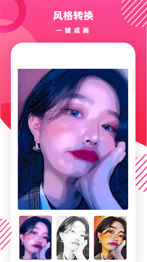 1、头像风格转换 里面有多种风格模板选择,卡通画风格、铅笔风格、彩色铅笔画风格、彩色糖块油画风格、薰衣草油画风格、奇异油画风格、哥特油画风格、呐喊油画风格,让你的照片更加与众不同 2、自拍美化 可以美颜人脸,有磨皮、瘦脸、大眼、美白、替换唇色等功能,结合各种滤镜,可以轻松美化你的头像,让你的头像个性十足 3、DIY专属头像 内设各种不同的发型、贴纸、头饰、头像框、星座,diy自己喜欢的风格,制作属于你的专属头像 4、精选头像 热门高清精选头像大全,女生,男生,情侣,个性、动漫、卡通、可爱等头像,分类清晰明确,方便选择自己喜欢的风格 5、头像定制 提供多款卡通手绘真人照片的头像定制,由专业画师根据原图设计看起来酷似您的生动卡通头像,您可以设置为微信、qq头像软件功能