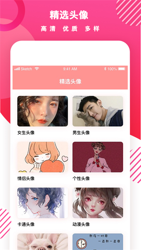 【全面】 超过400款主题头像包,上万款头像素材,总有一款适合你!还有强大的搜索功能,直接找到你想要的头像 【新潮】 定期大量更新,涵盖动漫、明星、个性、可爱等全部热门头像类。每日推荐最时尚的头像,潮人首选! 让你瞬间引爆朋友圈 【个性】 提供8大分类,400多个子类,分类清晰明确,快速定位自己的爱好。为你打造最独特的头像,保证你的头像个性十足 【贴心】 独家推出的预览功能,随意调节头像大小、位置,适配微信头像、QQ头像等,让你直接预览头像效果,省去在不同软件中设置的麻烦推荐理由