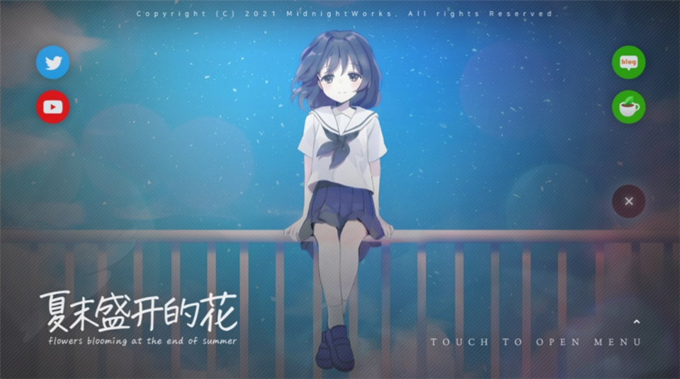 1、不同于传统视觉小说的别致导演 《夏末盛开的花》是一部采用了与传统视觉小说完全不同的新颖导演,以“电影式视觉小说”为目标制作而成的作品。尽情欣赏高质量的动态过场动画、事件CG和背景,以及带来别致感觉的演出片段。 为了符合“电影式视觉小说”这个名字,这部作品在韩国视觉小说中首次使用了多于500段的视频剪辑以提升作品的质量。 2、隐藏在可爱插画后的动人而深情的故事 ninnin绘制的高质量可爱而美丽的插画使人赏心悦目。生动表现各种情境的多个事件CG则有助于沉浸在故事中。 而且,可爱而温暖的插画之后隐藏着一段小说般深情而动人的故事。这种组合,进一步增添了神奇感和余韵。 3、出色的原创音乐和歌曲 HyuN负责了这部作品的原声音轨与歌曲“最后的愿望”和“夏末盛开的花”。他曾担任Deemo的Last Promise,VOEZ的Cross†Revolution等曲目的作词和作曲。Elika,Ny_Aru多位有名音乐人也参与了演唱,使歌曲更加出色。游戏截图