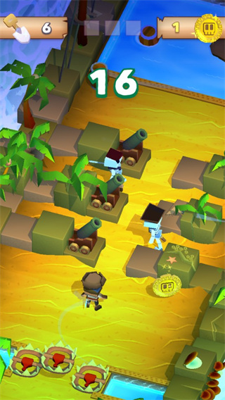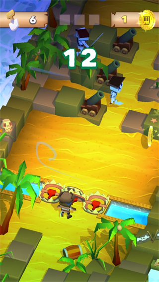 该游戏的操作是采用了点触控式设置,清点游戏屏幕即可让海盗王前进,而左右滑动即可变换行动方向,但不能后退,否则你将粉身碎骨,并且只要你点击的屏幕够快,那么海盗王的移动速度也是变快,这对于游戏中的各大陷阱通过是之至关重要的。