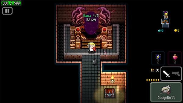本作中所有关卡的地形都是随机生成,人物可以携带近战武器和远程武器各一种,通过收集宝物提高人物的属性。打败BOSS后可以进入下一层,在战斗中获得的金币可以在地图中随机生成的商店购买道具和武器,蓝魂可以在道中的NPC处解锁人物动作和道具槽等附加功能。在战斗中死亡会回到初始房间中并失去身上所有装备,不过道具和解锁的能力可以得到保留,玩家可以多次尝试累积自身的战斗力。