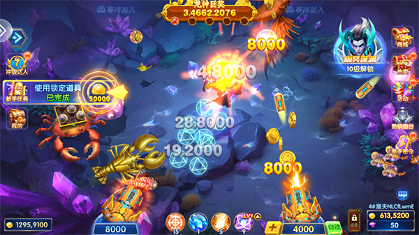 1.【新增鱼种】boss鱼-凤凰神射 2.【新增活动】凤凰秘宝 3.【新增活动】超级发财金 4.【新增活动】淘金盛宴 5.【新增礼包】豪送金点券游戏截图