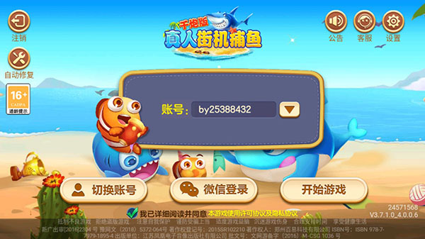 1、在本站下载真人街机捕鱼千炮版并注册登录,完成后点击开始游戏,进入海底世界