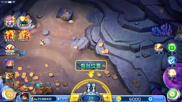 4、游戏开始,首先调整自己的炮台位置,之后看准鱼儿们的游动方向,开始发射