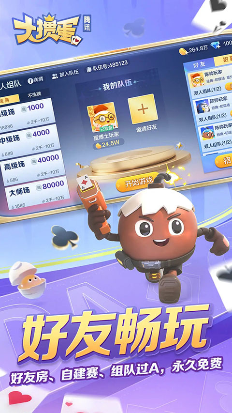 1、【正宗掼蛋】 经典传承,原汁原味,还原正宗掼蛋玩法! 2、【玩法丰富】 不洗牌、疯狂翻倍等多种线上创新玩法,更快速的节奏,更爽快的体验,更丰富的配合策略等你体验! 3、【海量福利】 豆子不够用?游戏天天送!登录游戏,参与签到,好友分享,海量游戏豆等你来拿!还有更多神秘奖励等你发现! 4、【真人对战】 百万玩家真实对战。一键快速匹配,与各路高手组队,即刻进入房间,享受游戏带来的无尽乐趣! 5、【智能理牌】 智能AI一键呈现最佳牌面,同花顺炸弹一目了然,让您运筹帷幄,决胜千里! 6、【赛事竞技】 福利赛、协会赛、品牌合作赛等丰富赛事每天战不停,最强的对手,最快节奏的牌局,尽在赛事玩法!热门模式