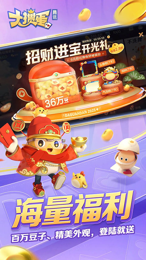 1、每日争夺赛 为了满足广大玩家对赛事竞技的渴望与热情,我们持续致力于赛事系统的优化升级。在游戏中,玩家都能自由创建并组织属于自己的赛事,尽享竞技乐趣。同时每天都会开启福利赛事,奖励丰厚,不仅能享受与高手过招的快感,更能赢取海量奖励,助您在游戏中超级加倍!(注意:赛事系统仅供玩家闲暇娱乐、切磋牌技使用,禁止赌博) 2、单人争夺赛 比赛时间:每日中午13:00 比赛奖励:获得第1名的选手,奖励10万豆、第2名奖励8万豆、第3名奖励5万豆、第4-6名奖励3万豆,第7-24名奖励1万豆! 3、双人争夺赛 比赛时间:每日晚上19:00 比赛奖励:获得第1名的队伍,奖励10万豆、第2名奖励8万豆、第3名奖励5万豆、第4-6名奖励3万豆、第7-24名奖励1万豆!更新日志