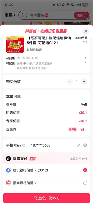 -首页更快发现省钱团购 -新人福利,天天可领优惠券 -支持一键抖音登录,同步抖音团购订单、收藏等数据