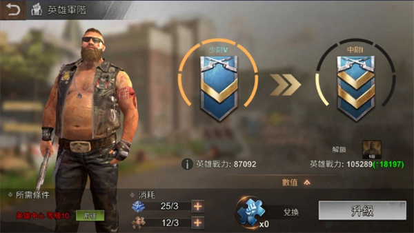 目前,全面尸控提供下列三种英雄强化的功能: 「英雄升级」:使用各种「作战手册」时,可以提升英雄的等级,进而提升英雄的战斗、基础数值和出征容量。 英雄的等级上限会被英雄中心的当前等级所限制。 「英雄升阶」:消耗一定量的英雄碎片和英雄徽章时,便可提升英雄的军阶。 英雄升阶后,将获得大幅的战力加成、基础数值加成以及带兵数值加成。 另外,玩家可以通过提升英雄的军阶来提升该英雄的技能等级之上限。 英雄的军阶上限会被「英雄中心」的当前等级所限制。 「技能强化」:每一名英雄都会拥有3个技能。 玩家可以消耗与英雄质量相同的技能书来提升英雄技能的等级,进而强化英雄技能的效果。 英雄技能的等级会被英雄当前的军阶所限制。