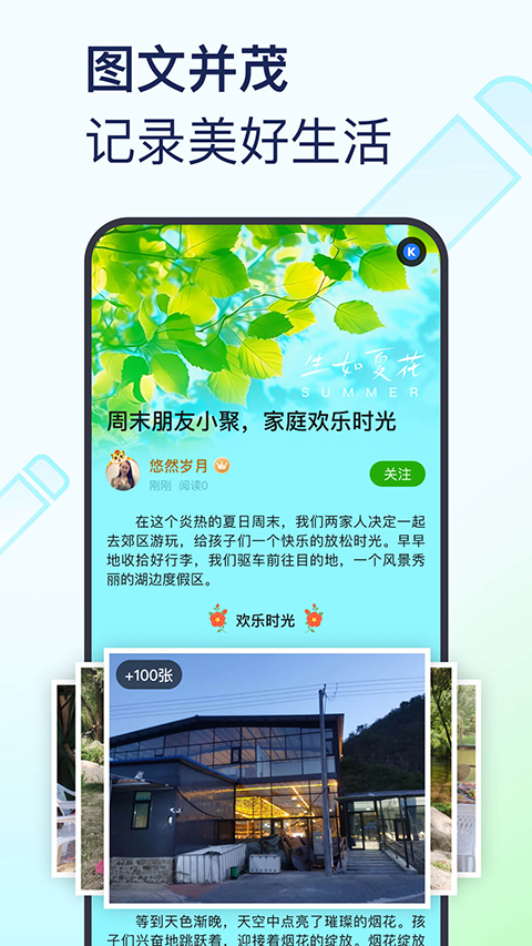 1、海量模版、丰富音乐、百变字体,让创作更生动 厌倦了单调的黑白文字?不妨尝试为你的文章添加精美模板,搭配动人音乐,挑选别致字体。节日、日常生活、亲子、旅行……无数款式的模板随心选,热门金曲、经典老歌、抒情音乐,丰富音乐库满足不同场景需求。 2、兴趣交友,发现有缘之人 摄影、旅游、时尚爱美、琴棋书画、文学、艺术、运动锻炼……在美篇,你将找到与你兴趣相投的知己。不再孤单追逐,有了志同道合的伙伴,一起探索兴趣的乐趣,寻找共鸣的点,彼此激发更多创意。 3、便捷分享,即刻传递情感 一键分享到微信、朋友圈、微博等社交平台,让你的精彩瞬间轻松传递。与朋友们分享你的故事,迎来他们的赞赏与评论,拉近彼此的距离。 4、打造“个人公众号”,成为美篇网红 经营个人专栏与作品集,展示作家般的才华与创作。凭借独特才华,吸引10W+读者,成就美篇网红之路主要功能