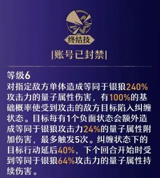 至于推条,如下图,当前有一只 t 还剩70%T才进入【行动】的外宇宙之冰,此时如果启动银狼的终结技并对其造成弱点击破的话(假设银狼击破特攻为0),那么其就要受到弱点击破通用的25%、量子属性破弱的30%(这部分受击破特攻加成)加上银狼终结技自带的40%共计95%的行动延后效果,即距离会被推到T的总长度的165%的位置,大幅的增加了阿冰进入下一轮【行动】的时间。
