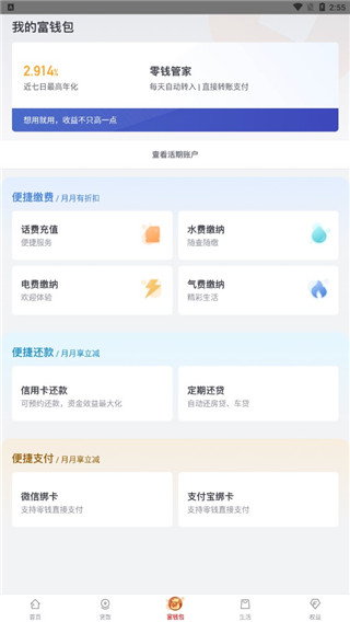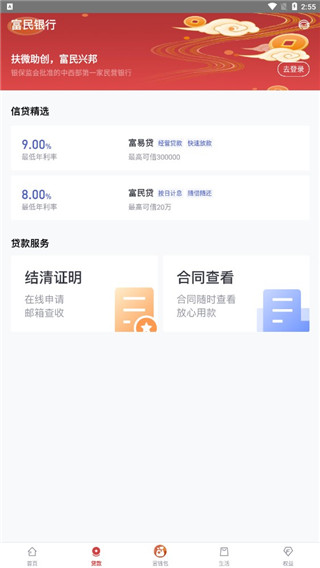 1、便捷支付:支持线下银联商户二维码支付,线下支付优惠多。 2、账户直观:轻松查看您的账户资产,更省心。 3、富民宝:创新你的现金管理,让你享受较高收益的同时还能随时存取无压力。 4、富易贷:线上申请,极速放款,大额低息,随借随还。4.4版本对指定客户授信,后续对各类优质客户分批开放。 5、急速开户:无需人工审核,轻松刷脸开户,享受更便捷金融服务。 6、零手续费:转账手续费全免,真心为您而省。软件功能