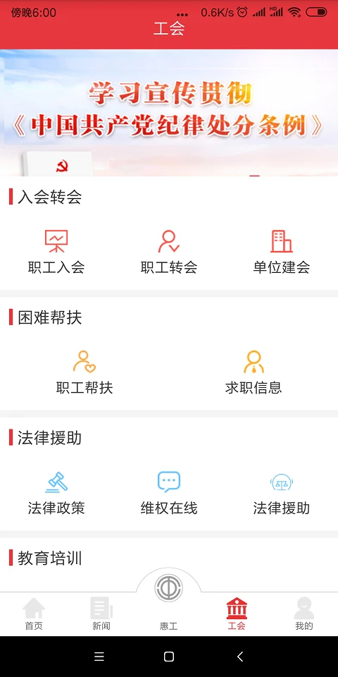 1、惠工 情系职工,为工会会员提供多维度的惠工服务,如惠享超市(低折扣秒杀商品)、免费观影、文演抢票(免费看演出)、优惠送餐(外卖优惠)、免费打球、挂号补助等,随时随地享受服务。 2、新闻 国家大事随时了解,身边小事及时知道,“知工”可以为用户提供国内热点新闻、天津市总工会要闻、基层工会动态。将特色内容及时的呈现给用户,用户可随时随地的浏览新闻。 3、工会 方便工会干部及工会会员办理业务,如入会、转会、建会申请、法律咨询与援助申请等。用户可随时随地办理业务。软件特色