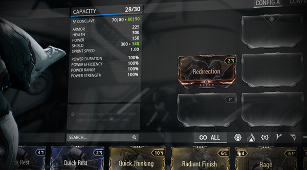 每张装备的 Mod 都会占据你的升级容量—一种会随着武器或战甲等级提升的自动增加的容量上限。