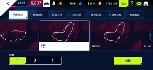 在创建的时候,可以选择赛道、比赛圈数等。