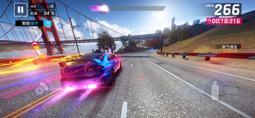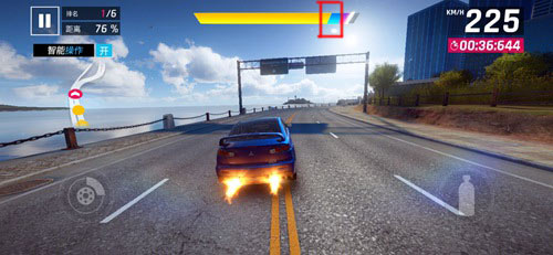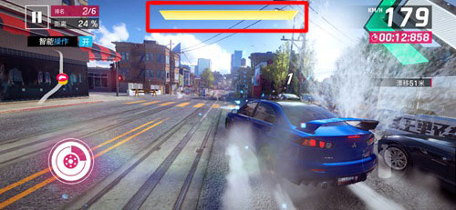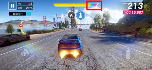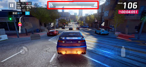 另外,狂野飙车9还增加了“氮气爆发”效果。当氮气管续满后,最顶端会出现紫色区域,快速点击两次氮气加速按钮,即可触发氮气爆发效果。