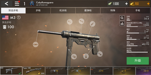 3、散步也很低,射速略逊于M3,对于不氪金的肝帝来说基本上可以用到老。
