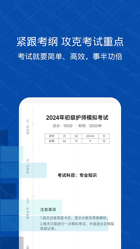 1、智能系统让你专注刷题 实时跟踪分析答题进度,错题自动整理,随时回顾 2、高质量试题大公开 全优师资逐一精选试题,更有精编模拟卷限时开放 3、超大题库免费使用 10000+专属试题,全科目覆盖,不用注册也能免费刷题,注册用户可免费使用2000题软件功能