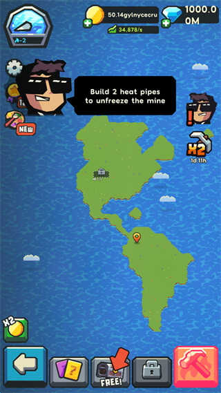 1、开局需要玩家手动点击石块进行“挖矿”。