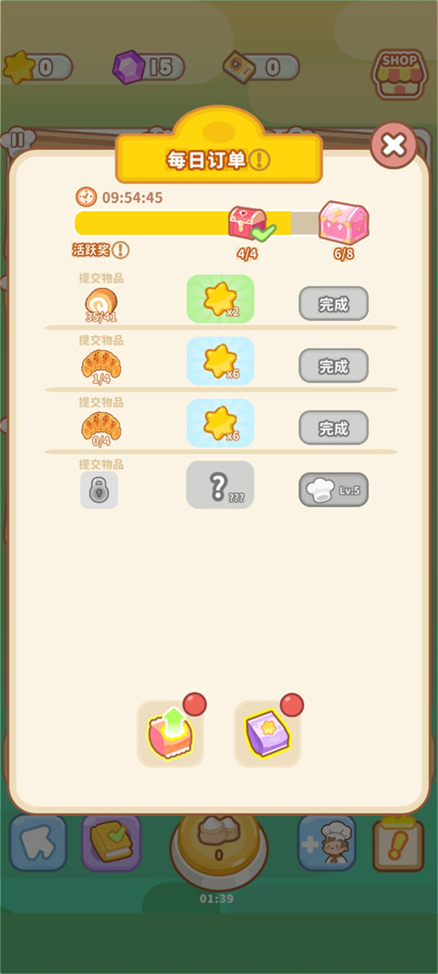 6、游戏中还有订单,长按订单会将相应的食物收集进去;