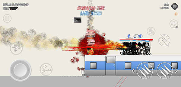 一、火柴人战争血腥打击新手入门 1、点击开始之后玩家可以选择两种模式,一种是教学,另一种是杀敌竞赛,后续的模式还需要一步步地去解锁。 2、采用了火柴人的风格,画面比较简约,色调也比较单一,不过这些都无碍。 3、游戏中的按键设计非常的经典,在玩家屏幕的左边是控制人物左右移动,连续点击两下还会进行扑越躲避子弹。 4、还有几个键,分别对应的加速等键,可以给你更强的操作空间,下蹲只有在靠近掩体时才会有作用。 5、游戏中的射击方向是固定的,就需要你不断的移动才能快速的打击到敌人,无法自由转换,点左边就朝左边打,点右边就朝右边打。