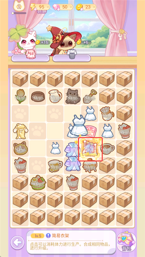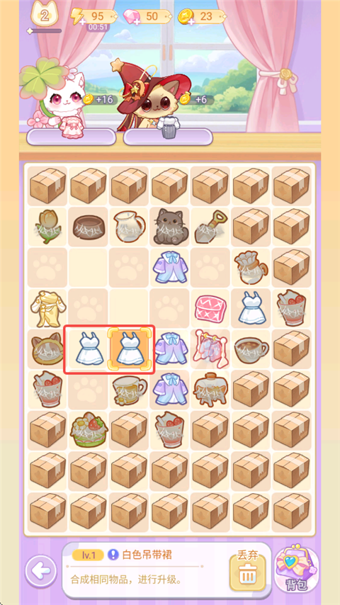 4、将相同的两个衣服合成,获得下一阶的衣服。