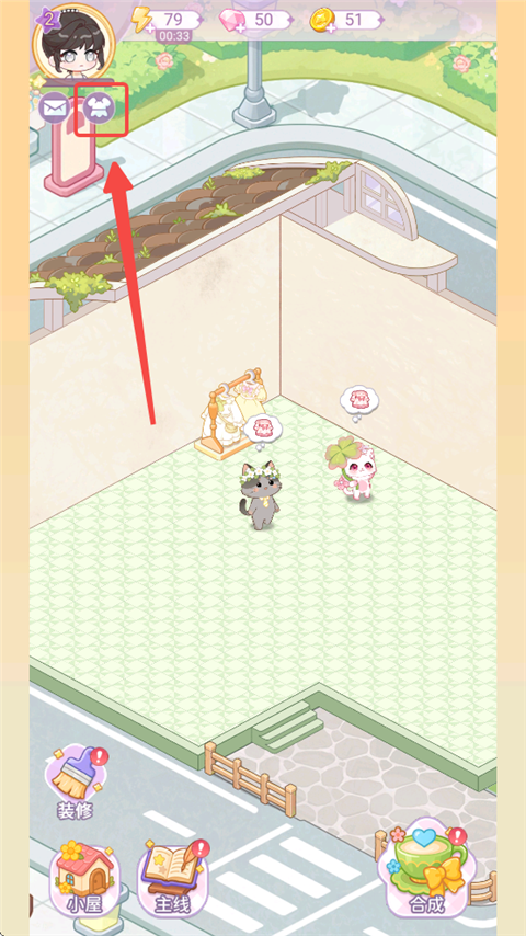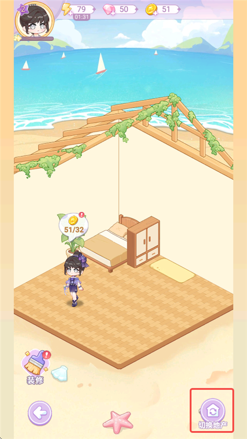 7、来到小屋,点击【切换地产】可将主页显示的单间切换成双层。