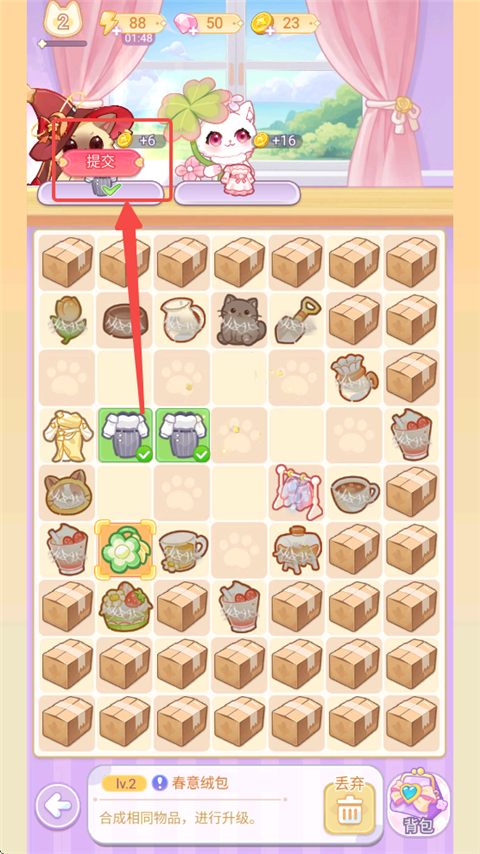 5、合成获得了目标衣服就可以提交,即可获得金币。