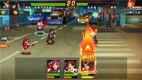 在《拳皇98终极之战OL》中,每一章故事中都拥有多个关卡,而每个关卡都不止一波敌人,而战斗也是有规则和技巧的。为了让大家在手机端找到当初街机连击的感觉,这次《98格斗天王/拳皇》在战斗中设置了普通攻击、连击操作、一般技能攻击和必杀技。 普通攻击: 首先是最基本的普通攻击,你可以通过点击格斗家头像或者点击敌人的方式来释放普通攻击和一般技能攻击。