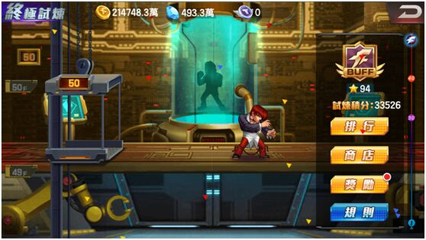 也就是说,第一次挑战失败后再次进入关卡敌方阵亡不会上阵。因此要多多注意主力格斗家的血量,调整可爱的麻宫妹妹到阵上来回血。一直前进直到全部可参战的格斗家阵亡。在终极试炼中,每一关分为三个难度,难度越高,积分和关卡星越多。积分最后会在全服排名,排名越高,每日9点结算时获得的奖励就越多。其中试炼币奖励可以在试炼商店中兑换稀有物品和格斗家碎片。而关卡星可以在每过两关后用来购置增强自身战力(仅试炼中有效)的BUFF。