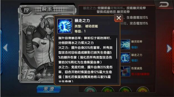 提升自身暴面率;瞬影征于前后排时,分别获得水之力或火之力。