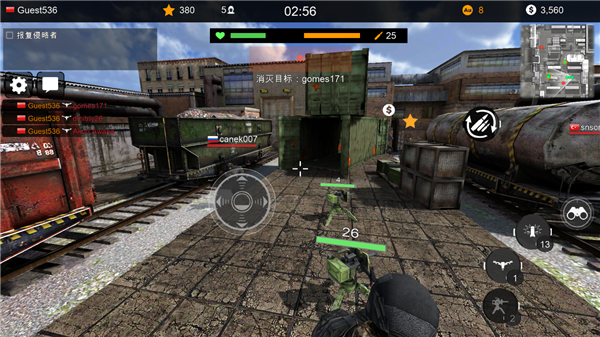 • 现代的3D图形 • 海量的武器和士兵升级选择 • 大量的伪装和贴纸 • 大量的独特战场 • 直观清晰的控制系统,对新手和骨灰级玩家一样友好 • 完成每日任务并提升您的战士 • 在国家聊天中与玩家交谈 • 动态的战斗,激烈的动作,让您爱不释手 • 您可以选择任意战斗模式:团队战斗或全自由战斗。而这一切都是免费的!Code of War代码枪手玩法