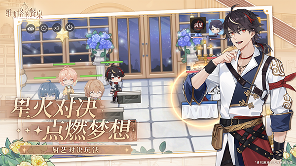 1、剧情交互,与他们的羁绊从这里展开 现代都市、海岛校园、神话传说、爱与美食,味觉具现出心中的感情与思念……一切由你点燃。你在这里将邂逅维斯塔学院各研修会的成员,他们会与你一起学习与成长,并一同探寻数年前学院内的长明之火突然熄灭事件的背后真相。 2、厨师养成,由你见证他的成长 雕琢精美食谱,钻研各色菜系,培养厨师们与火焰的共鸣。每张卡面都附带单人剧情,升级之后即可开启,加深你们之间的羁绊与了解。另外还可以为他们进行换装搭配,让他们穿着你最喜欢的服饰站在你的面前吧! 3、厨艺比拼,半回合制厨艺对决玩法 指挥厨师进行厨艺比拼,不同厨师拥有不同技能,让他们展现自己的精妙厨艺,折服面前挑剔的评委与充满实力的对手。这是参照学院庆典中的篝火对决建立的校内竞赛制度,通过战斗获得交流学习与自我提升。 4、打造餐厅,展现自己的独家概念 与AI助手“鸥宝”一起打造一间属于自己的餐厅,装修布置,提供美食,满足食客们不同的服务需求,还能解锁研修会成员们的特有喜好与特殊剧情,让值班的他们与你一起度过愉悦的休息时光!游戏截图