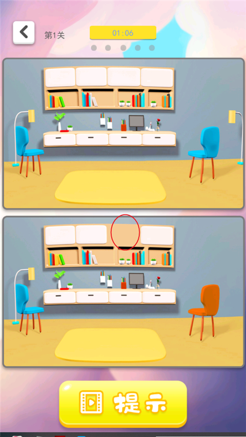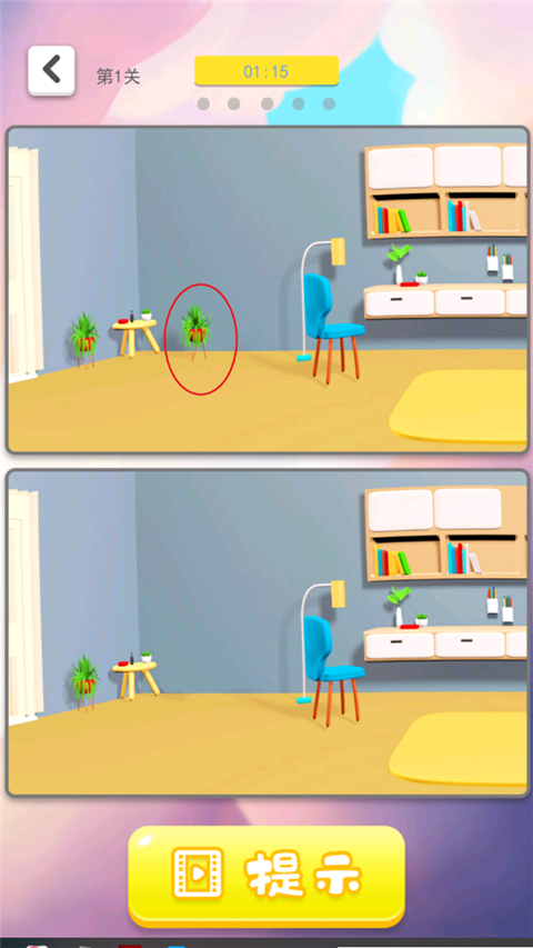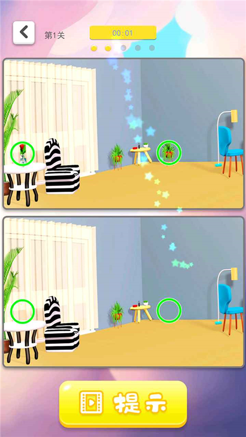 1、两张图片看一看、比一比,找出图中不同的地方,来完成闯关任务? 2、小手点一点,轻松提升专注力! 3、有限的时间挑战,提升你的紧迫感与成就感,要仔细观察哦。 4、图片各不相同,感受找茬的趣味,帮你培养好耐心!3d找茬游戏第一关攻略