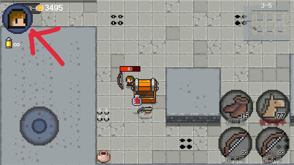 右下角的四个武器框,三个是用来装武器的,左上角的那个是用来装特殊道具的(目前只有圣光盾,时间项链,疾风靴)