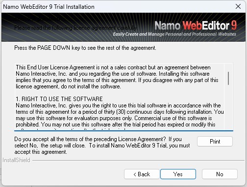 2、运行安装文件“NamoWebEditor9EnuTrial.exe”并点击next