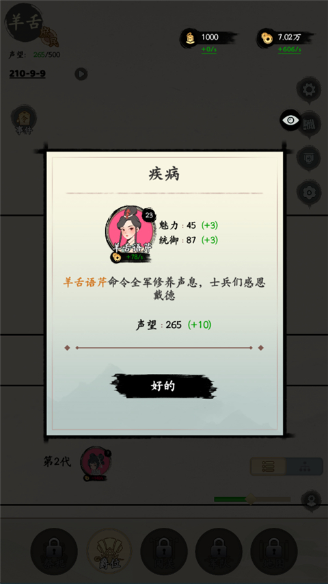 三国人生是一款模拟人生类游戏。在这里,玩家将重新选择一次人生,体验从零开始,打造最强家族的逆袭之旅!游戏中每一个人生选项由你选择,开局自定义分配属性点以及天赋选择,随着时间的结妻生子并为其选择姓名,遇见不同的事件并处理,说不定可以收到武功奇才、高人到名下。