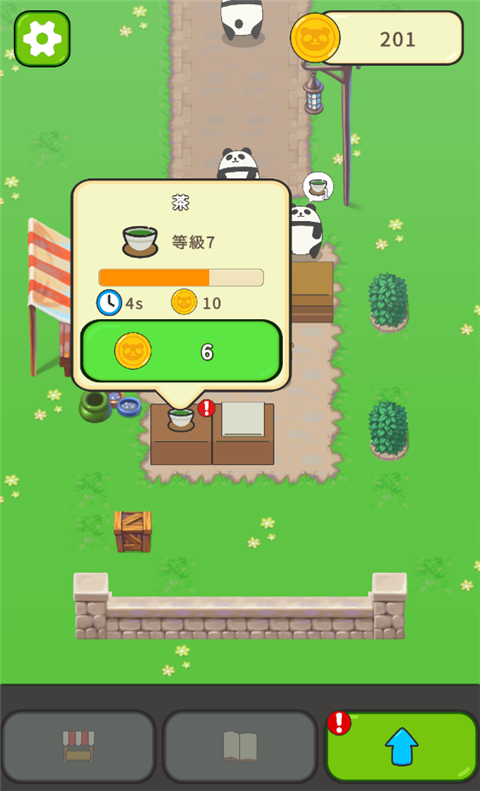 1、多种菜单 有很多熊猫喜欢的菜单!您可以享受各种元素,如食物升级、解锁新菜单、缩短烹饪时间和扩大店铺。还有一些游戏元素可以让你悠闲地扩展你的商店或深度参与游戏。 2、闲置离线奖励 即使你不在游戏中,钱也会积累起来,让你升级你的咖啡馆并获得奖金,以有效地进步。你可以慢慢玩,也可以深度参与——这是一款独特的管理模拟游戏,让你可以通过让咖啡馆闲置来升级它。 3、淘气熊猫 “钱,钱,钱!” “你什么意思?你不再给我钱了吗?!” 熊猫真的很贪婪吗?!分阶段前进,揭开淘气熊猫的真相!在这款独特的游戏中,享受与一只熊猫共度时光的迷你故事,熊猫不仅喜欢竹子,还喜欢金钱,游戏元素会让你保持专注。尽可能多地赚钱!熊猫咖啡馆游玩攻略